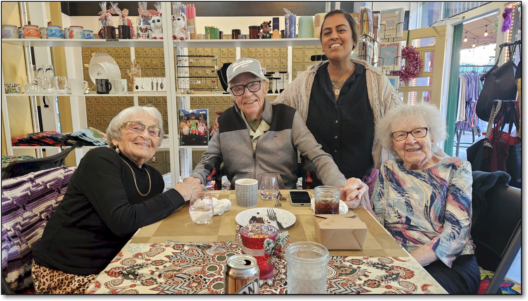 Last December, Barbs mom— (yes, 98 and still full of sparkle and smarts) —made a big move from her independent living facility in Gulf Shores, Alabama, to live with Lorraine and Forrest in their coastal La Jolla home. Mom, Jane (the neighbor/renter/bonus housemate), and Lorraine became a card-playing trio of unstoppable force, conquering Rummikub for hours on end. Meanwhile, Forrest handled all the logistics and cooked like he was auditioning for Top Chef: Family Edition . Mom and Lorraine even got crafty with Lorraine's garden guilds. Honestly, they were having so much fun we considered moving in too. |