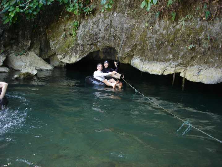 You ride an innertube inside the cave