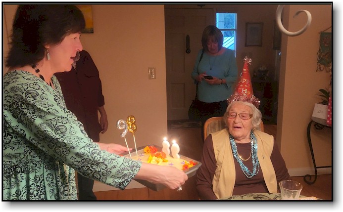 On October 31st, Mom moved from La Jolla to Belmont Village Senior Living, (15 miles North) —and proceeded to thrive like a tomato plant in July. She loves the residents, adores the staff, and raves about the chef-prepared meals. It seems there is never a dull moment at Belmont - from exercise classes and art to music and games. Since she's just three miles from us in Encinitas, Barb pops in most mornings for a cheerful start to the day. It's been wonderful watching her so happy. (click on image) |