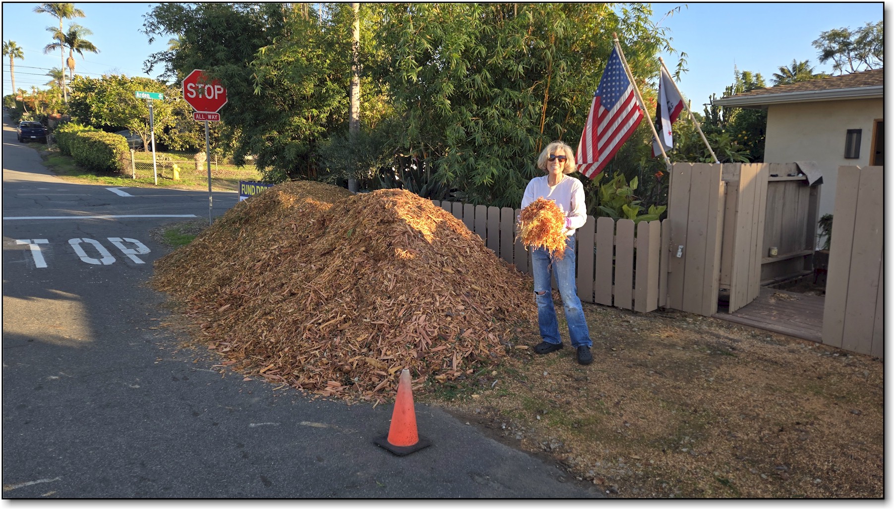 And then…the Great Cedar Tragedy of 2025. Jack and Evie planted it as a tiny sapling 50 years ago, and it grew into a magnificent 50-foot beauty. Unfortunately, the new sewer line fatally injured its roots, and three arborists independently agreed it had become unsafe. Watching it come down was heartbreaking, but Barb kept all the chippings and used them as mulch throughout the yard. So technically, “Old Cedar” is now everywhere. He lives on in spirit—and landscaping. (click on image) |